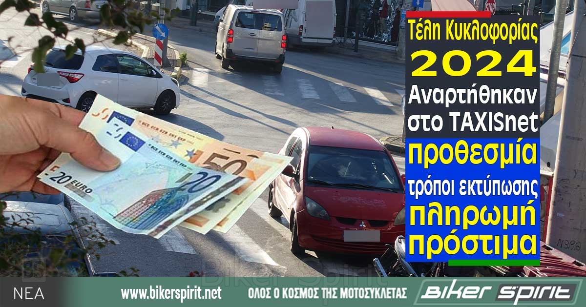 Τα Τέλη Κυκλοφορίας 2024 Αναρτήθηκαν στο TAXISnet – προθεσμία – τρόποι εκτύπωσης – πληρωμή – πρόστιμα