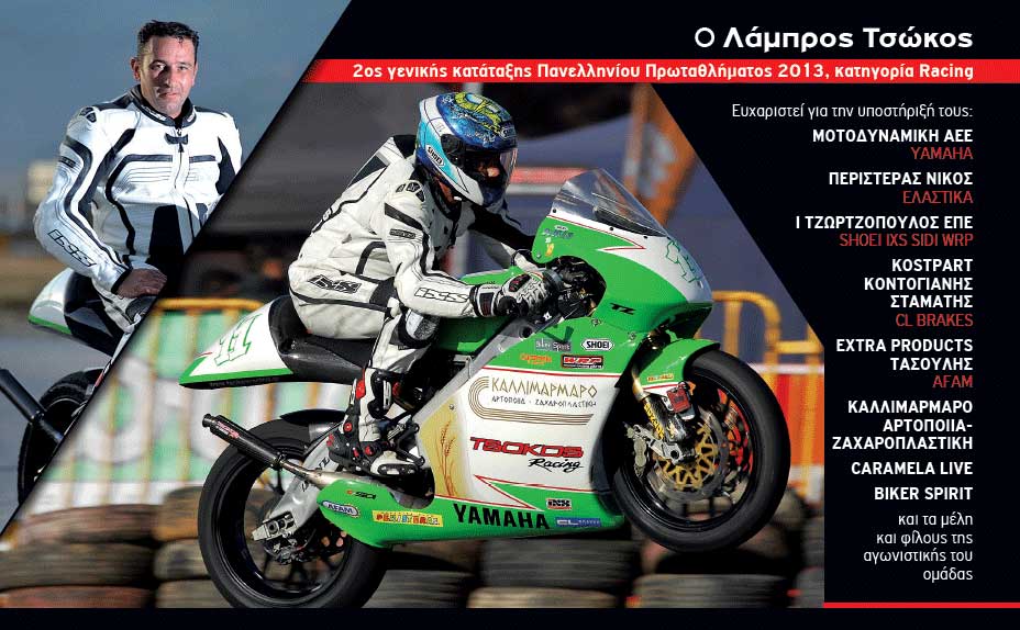 ΔΕΛΤΙΑ ΤΥΠΟΥΠαν.Πρ.Ταχ. 2013 Ο Λάμπρος Τσώκος στην 2η θέση του Πανελληνίου Πρωταθλήματος Ταχύτητας 2013 στην κατηγορία Racing. 29 November 2013 BikerSpirit Tsokos Racing, Λάμπρος Τσώκος, Παν.Πρ.Ταχ. 2013, Πανελ. Πρωτάθλημα Ταχύτητας 2013 0 min read Share this: Share on Facebook (Opens in new window) Facebook Share on X (Opens in new window) X Share on LinkedIn (Opens in new window) LinkedIn Print (Opens in new window) Print More Share on Reddit (Opens in new window) Reddit Share on Tumblr (Opens in new window) Tumblr Share on Pinterest (Opens in new window) Pinterest Read More
