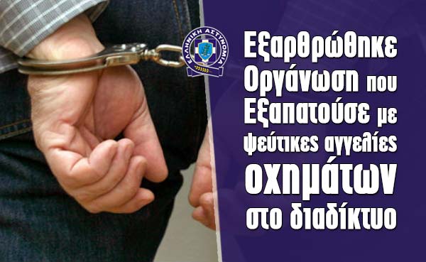 ΔΕΛΤΙΑ ΤΥΠΟΥ Εξαρθρώθηκε Οργάνωση που Εξαπατούσε με ψεύτικες αγγελίες οχημάτων στο διαδίκτυο 15 February 2017 BikerSpirit Αστυνομία, διαδίκτυο, εγκληματική οργάνωση, Εξαρθρώθηκε, Εξαρθρώθηκε Οργάνωση, ψεύτικες αγγελίες 5 min read Share this: Click to share on Facebook (Opens in new window) Facebook Click to share on X (Opens in new window) X Click to share on LinkedIn (Opens in new window) LinkedIn Click to print (Opens in new window) Print More Click to share on Reddit (Opens in new window) Reddit Click to share on Tumblr (Opens in new window) Tumblr Click to share on Pocket (Opens in new window) Pocket Click to share on Pinterest (Opens in new window) Pinterest Read More