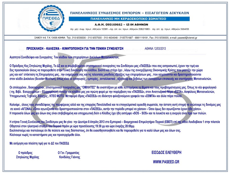 ΔΕΛΤΙΑ ΤΥΠΟΥ ΓΕΝΙΚΗ ΣΥΝΕΛΕΥΣΗ «ΠΑΣΕΕΔ» 27 March 2013 BikerSpirit ΠΑΣΕΕΔ, Σπηλιώτης Μιχάλης 1 min read Share this: Share on Facebook (Opens in new window) Facebook Share on X (Opens in new window) X Share on LinkedIn (Opens in new window) LinkedIn Print (Opens in new window) Print More Share on Reddit (Opens in new window) Reddit Share on Tumblr (Opens in new window) Tumblr Share on Pinterest (Opens in new window) Pinterest Read More