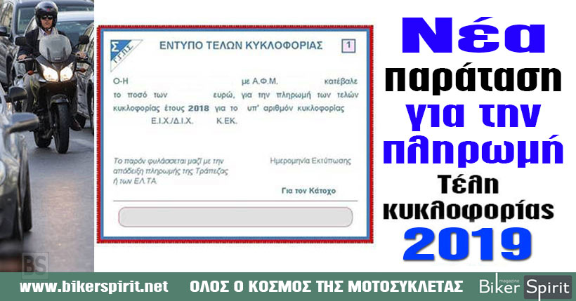 Νέα παράταση για την πληρωμή των τελών κυκλοφορίας 2019