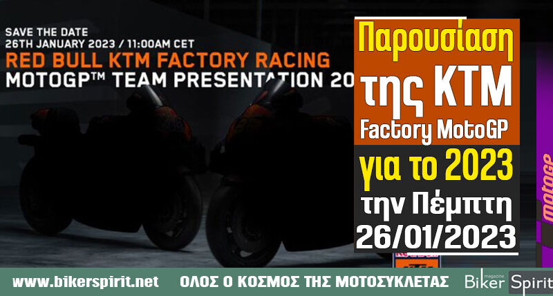 MotoGP 2023 Η KTM Factory θα παρουσιάσει τις μοτοσυκλέτες και την ομάδα της για το 2023 στις 26 Ιανουαρίου 2023 26 January 2023 BikerSpirit Brad Binder, Jack Miller, KTM, MotoGP, ready to race 0 min read Share this: Click to share on Facebook (Opens in new window) Facebook Click to share on X (Opens in new window) X Click to share on LinkedIn (Opens in new window) LinkedIn Click to print (Opens in new window) Print More Click to share on Reddit (Opens in new window) Reddit Click to share on Tumblr (Opens in new window) Tumblr Click to share on Pocket (Opens in new window) Pocket Click to share on Pinterest (Opens in new window) Pinterest Read More