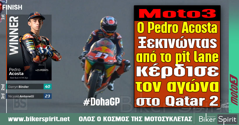 MotoGP 2021 Moto3: Ο Pedro Acosta κέρδισε τον αγώνα ξεκινώντας από το pit lane, στο Κατάρ 2 4 April 2021 BikerSpirit #DohaGP, #QatarGP, #QatarGP2021, #Racingforthem, Losail, MICHELIN, Moto3, Moto3-2021, MotoGP, MotoGP2021, Καταρ 1 min read Share this: Share on Facebook (Opens in new window) Facebook Share on X (Opens in new window) X Share on LinkedIn (Opens in new window) LinkedIn Print (Opens in new window) Print More Share on Reddit (Opens in new window) Reddit Share on Tumblr (Opens in new window) Tumblr Share on Pinterest (Opens in new window) Pinterest Read More