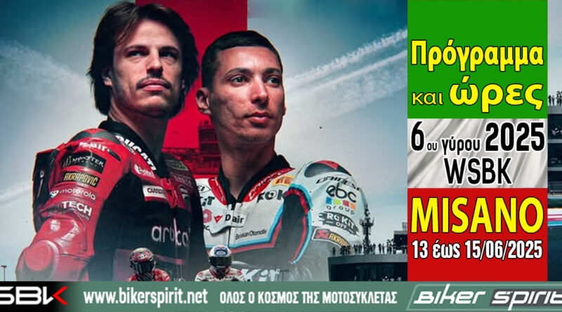 WSBK 2025 Πρόγραμμα και ώρες του 6ου γύρου των αγώνων WSBK στο Misano – Ώρες των δοκιμαστικών και των Αγώνων από 13 έως 15 Ιουνίου 2025 11 June 2025 BikerSpirit #EmiliaRomagnaWorldSBK Round, EmiliaRomagna, Misano, MisanoWorldCircuit, MotorcycleRacing, Pirelli, SBK, SUPERBIKE, WorldSBK, WSBK, WSBK 2025, WSBK2025 1 min read Share this: Share on Facebook (Opens in new window) Facebook Share on X (Opens in new window) X Share on LinkedIn (Opens in new window) LinkedIn Print (Opens in new window) Print More Share on Reddit (Opens in new window) Reddit Share on Tumblr (Opens in new window) Tumblr Share on Pinterest (Opens in new window) Pinterest Read More