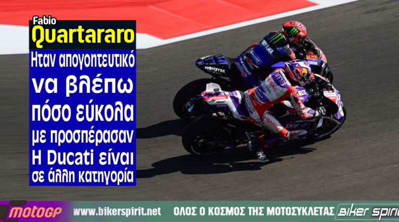 MotoGP 2023 Fabio Quartararo: “Ήταν απογοητευτικό να βλέπω πόσο εύκολα με προσπέρασαν – Η Ducati είναι σε άλλη κατηγορία” 15 October 2023 BikerSpirit #IndonesianGP2023, IndonesianGP, Indonisia, Mandalika, MotoGP, MotoGP2023, Ινδονησία 1 min read Share this: Click to share on Facebook (Opens in new window) Facebook Click to share on X (Opens in new window) X Click to share on LinkedIn (Opens in new window) LinkedIn Click to print (Opens in new window) Print More Click to share on Reddit (Opens in new window) Reddit Click to share on Tumblr (Opens in new window) Tumblr Click to share on Pocket (Opens in new window) Pocket Click to share on Pinterest (Opens in new window) Pinterest Read More