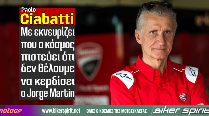 MotoGP 2023 Paolo Ciabatti: “Με εκνευρίζει που ο κόσμος πιστεύει ότι δεν θέλουμε να κερδίσει ο Jorge Martin” 18 October 2023 BikerSpirit #IndonesianGP2023, IndonesianGP, Indonisia, Mandalika, MotoGP, MotoGP2023, Ινδονησία 2 min read Share this: Click to share on Facebook (Opens in new window) Facebook Click to share on X (Opens in new window) X Click to share on LinkedIn (Opens in new window) LinkedIn Click to print (Opens in new window) Print More Click to share on Reddit (Opens in new window) Reddit Click to share on Tumblr (Opens in new window) Tumblr Click to share on Pocket (Opens in new window) Pocket Click to share on Pinterest (Opens in new window) Pinterest Read More
