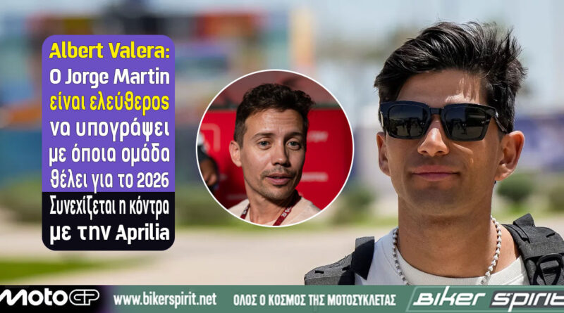 MotoGP 2025 Albert Valera: O Jorge Martin είναι ελεύθερος να υπογράψει με όποια ομάδα θέλει για το 2026 – Συνεχίζεται η κόντρα με την Aprilia 28 June 2025 BikerSpirit Albert Valera, aprilia, Jorge Martin, MotoGP 2 min read Share this: Click to share on Facebook (Opens in new window) Facebook Click to share on X (Opens in new window) X Click to share on LinkedIn (Opens in new window) LinkedIn Click to print (Opens in new window) Print More Click to share on Reddit (Opens in new window) Reddit Click to share on Tumblr (Opens in new window) Tumblr Click to share on Pocket (Opens in new window) Pocket Click to share on Pinterest (Opens in new window) Pinterest Read More