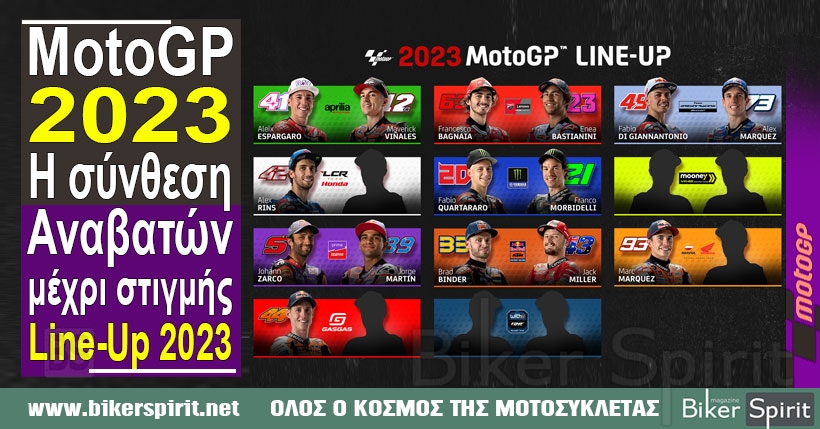 MotoGP 2022 MotoGP 2023 – Η σύνθεση αναβατών μέχρι στιγμής – Line-Up για το 2023 27 August 2022 BikerSpirit line-up, MotoGP, MotoGP 2023 3 min read Share this: Click to share on Facebook (Opens in new window) Facebook Click to share on X (Opens in new window) X Click to share on LinkedIn (Opens in new window) LinkedIn Click to print (Opens in new window) Print More Click to share on Reddit (Opens in new window) Reddit Click to share on Tumblr (Opens in new window) Tumblr Click to share on Pocket (Opens in new window) Pocket Click to share on Pinterest (Opens in new window) Pinterest Read More