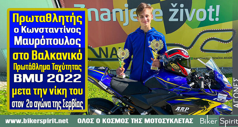 National Championships - BMU Πρωταθλητής ο Κωνσταντίνος Μαυρόπουλος στο Βαλκανικό Πρωτάθλημα Ταχύτητας BMU 2022 μετα την νίκη του στον 2ο αγώνα της Σερβίας 18 September 2022 BikerSpirit BMU, BMU- Europe Road Racing Championship, Navak, Βαλκανικό Πρωτάθλημα, Βαλκανικό Πρωτάθλημα Ταχύτητας 2 min read Share this: Click to share on Facebook (Opens in new window) Facebook Click to share on X (Opens in new window) X Click to share on LinkedIn (Opens in new window) LinkedIn Click to print (Opens in new window) Print More Click to share on Reddit (Opens in new window) Reddit Click to share on Tumblr (Opens in new window) Tumblr Click to share on Pocket (Opens in new window) Pocket Click to share on Pinterest (Opens in new window) Pinterest Read More