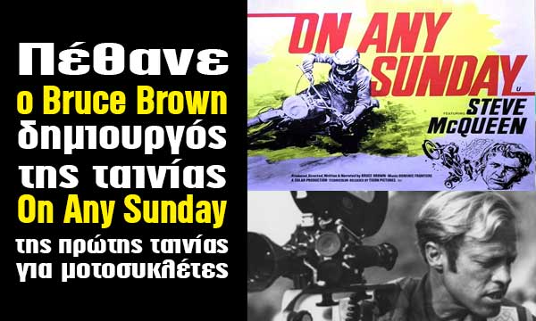 Διεθνή Επικαιρότητα Πέθανε ο Bruce Brown, δημιουργός της ταινίας On Any Sunday, της πρώτης ταινίας για μοτοσυκλέτες – Video 12 December 2017 BikerSpirit Bruce Brown, On Any Sunday, R.I.P., Steve McQueen, VIDEO, Απεβίωσε, Κάθε Κυριακή, Μπρους Μπράουν, ταινία 1 min read Share this: Click to share on Facebook (Opens in new window) Facebook Click to share on X (Opens in new window) X Click to share on LinkedIn (Opens in new window) LinkedIn Click to print (Opens in new window) Print More Click to share on Reddit (Opens in new window) Reddit Click to share on Tumblr (Opens in new window) Tumblr Click to share on Pocket (Opens in new window) Pocket Click to share on Pinterest (Opens in new window) Pinterest Read More