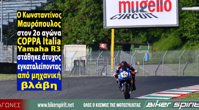 Ο Κωνσταντίνος Μαυρόπουλος στον 2ο αγώνα COPPA Italia Yamaha R3 Cup bLU cRU στάθηκε άτυχος εγκαταλείποντας από μηχανική  βλάβη