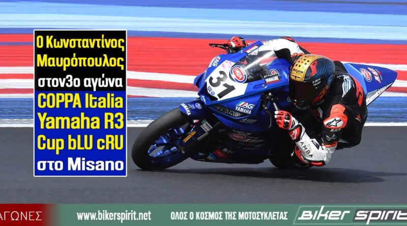 Ο Κωνσταντίνος Μαυρόπουλος στον 3ο αγώνα COPPA Italia Yamaha R3 Cup bLU cRU στο Misano