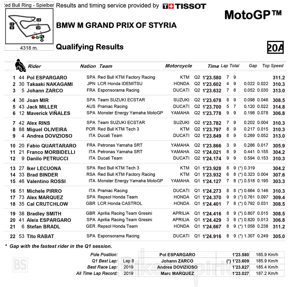 «Αισθάνθηκα πολύ καλά στη μοτοσυκλέτα όλο το Σαββατοκύριακο μέχρι τώρα και είναι πολύ καλό να βρίσκομαι στην πρώτη σειρά για τον αυριανό αγώνα. Αλλά θα είναι μια άλλη ιστορία στον αγώνα και είμαστε προετοιμασμένοι για αυτό.»
