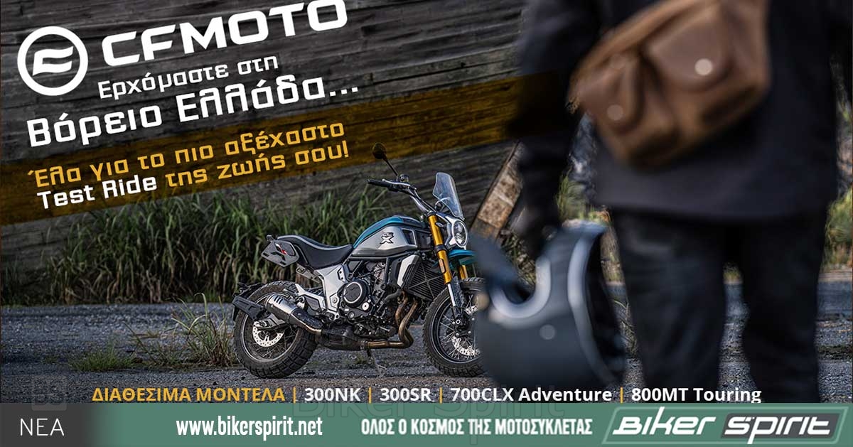 Η CFMOTO ξεκινάει το ταξίδι της στην Βόρεια Ελλάδα! Από 14 Ιουνίου έως 16 Ιουλίου θα δώσει την δυνατότητα στους υποψήφιους αγοραστές της να δοκιμάσουν τα μοντέλα 300SR, 300NK, 700CLX ADVENTURE και 800MT TOURING.
