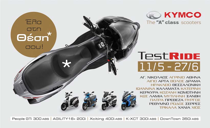 Ζήσε μια “A” class εμπειρία οδήγησης οδηγώντας ένα από τα πέντε κορυφαία μοντέλα της Kymco στο Πανελλαδικό Test Ride, σε 28 πόλεις,