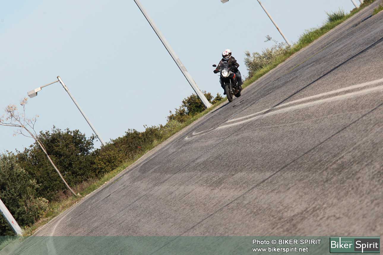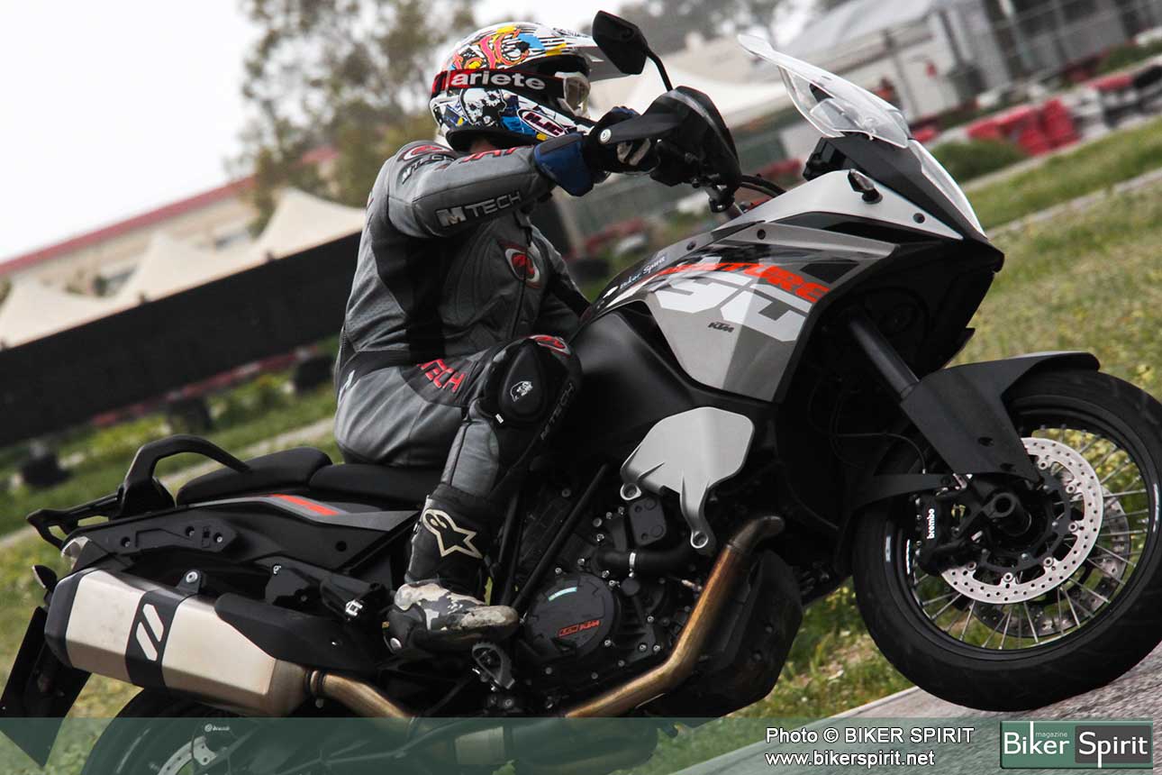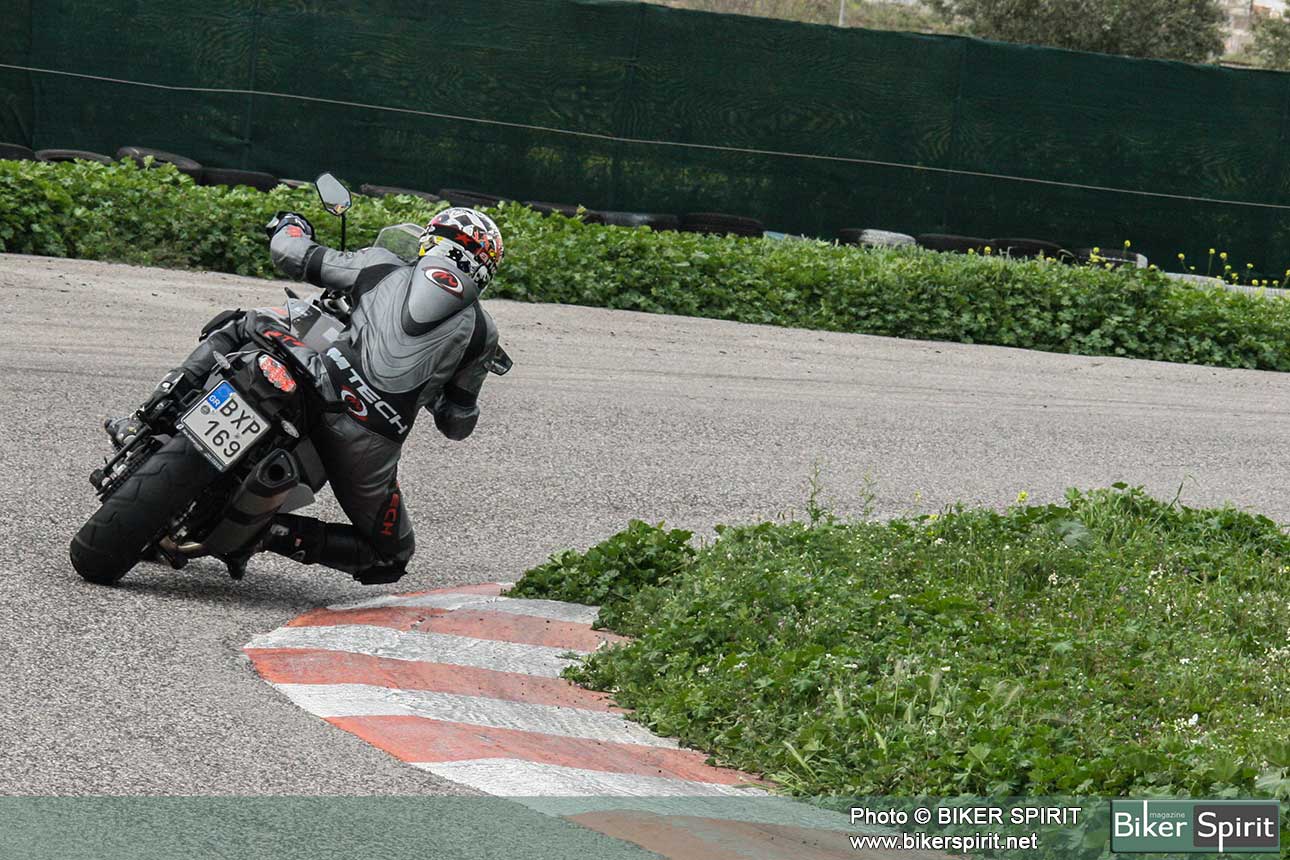 Στην πίστα των Μεγάρων με ρύθμιση Sport το μηχανάκι είχε άψογη συμπεριφορά και το άνοιγμα του γκαζιού δεν σε φόβιζε καθόλου αφού οι αναρτήσεις είναι προοδευτικές και δουλεύουν πολύ καλά , το πλαίσιο είναι στιβαρό και σου δίνει αμέσως την αίσθηση της σιγουριάς και βέβαια τα ηλεκτρονικά συστήματα, που είναι μια από τις μεγάλες αλλαγές της ΚΤΜ, προσφέρουν στον αναβάτη εμπιστοσύνη, με κυρίαρχο το συνδυασμένο σύστημα φρένων όταν πατάς το μπροστινό φρένο ενεργοποιείτε και το πίσω και με το ABS να κάνει την δουλειά του χωρίς πρόβλημα, σου δίνει την σιγουριά να πατάς την μανέτα του μπροστινού φρένου ανά πάσα στιγμή , όσο απότομα και σκληρά χρειαστεί !