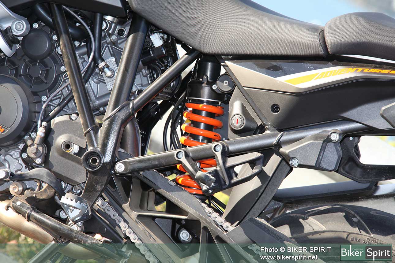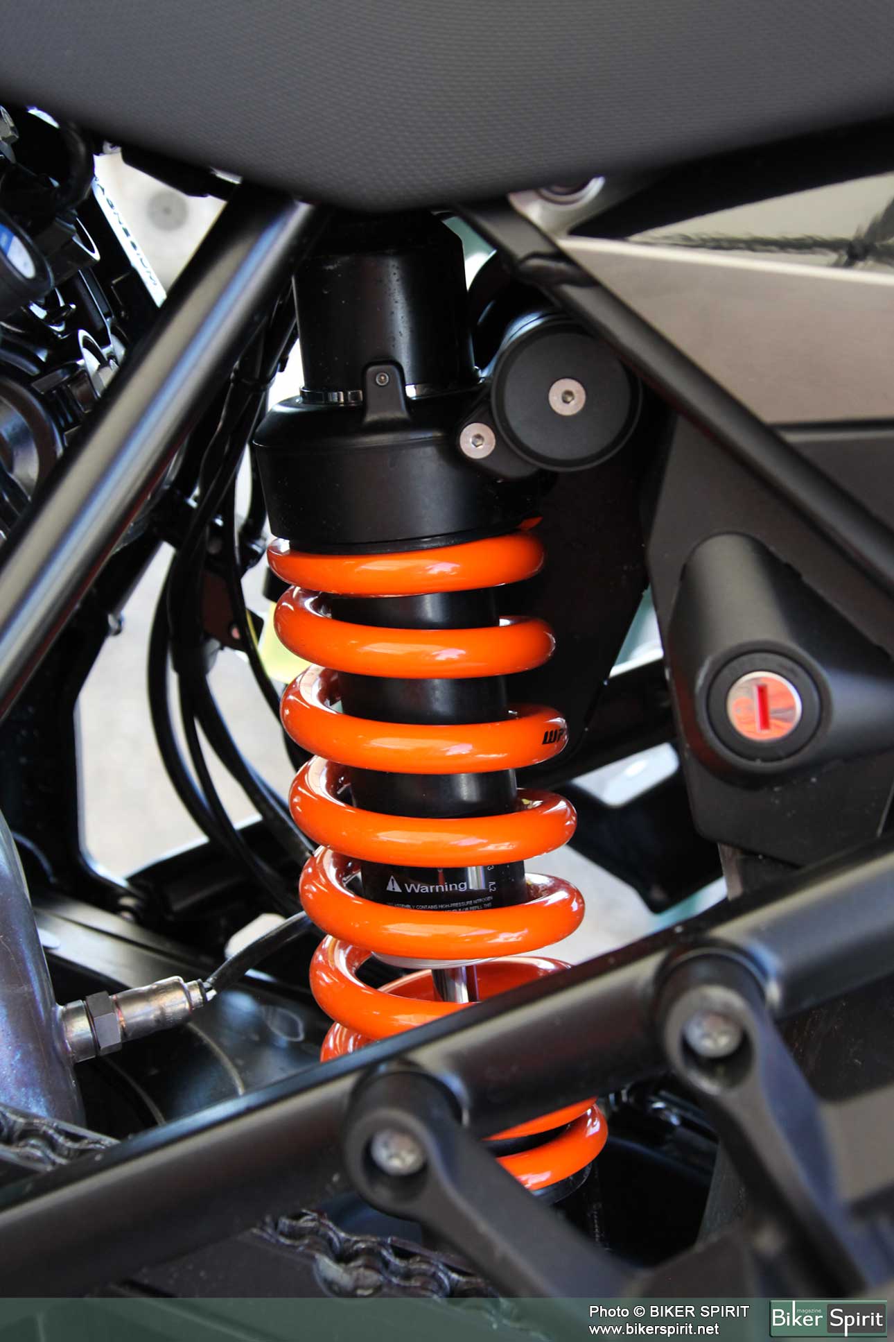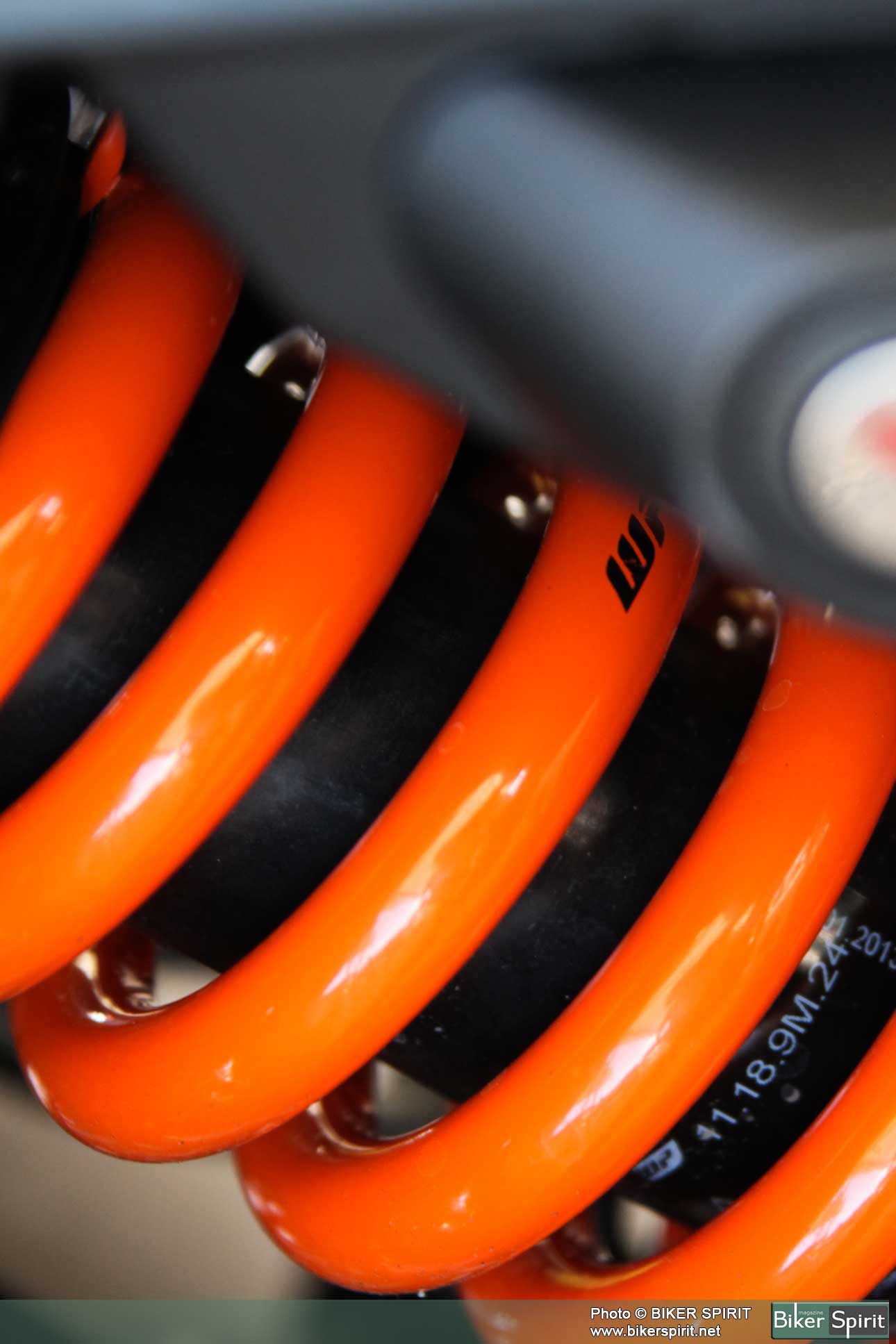 Μονό αμορτισέρ WP monoshock , διαδρομή 190 χιλιοστά(στην R έκδοση 210 χιλιοστά) ) , ρυθμίσεις απόσβεση επαναφοράς, προφόρτισης ελατηρίoy , ηλεκτρονικά ρυθμιζόμενη – EDS