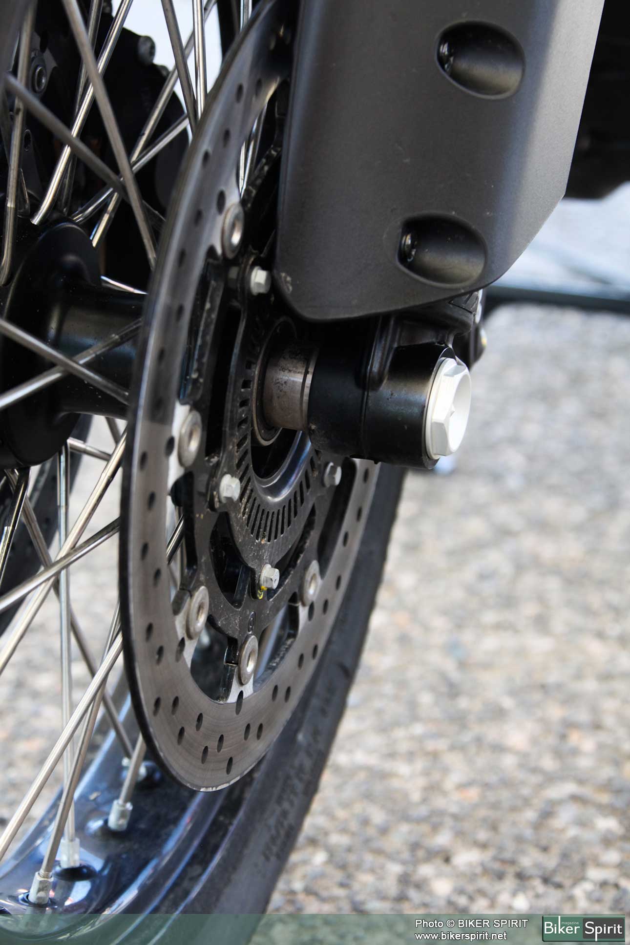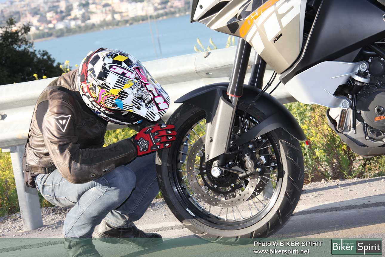 Ένα ακόμα πράγμα που με εντυπωσίασε στο νέο Adventure είναι το πίσω του φρένο το οποίο πιάνει και όταν λέμε πιάνει το εννοούμε , είναι εκεί ζωντανό, και το τονίζω γιατί έχω καιρό να καβαλήσω καινούριο μηχανάκι που το πίσω του φρένο να είναι ζωντανό. Θα μου πείτε τώρα, τι το θες το πίσω φρένο όταν έχεις ένα μπροστινό που κάνει όλη την δουλειά και με απόλυτη ασφάλεια σε συνδυασμό με το ABS ; Την ίδια ερώτηση μου έκανε και ο άλλος οδηγός της ομάδας μας. Εγώ λοιπόν θα απαντήσω ότι όλα εξαρτώνται από το στυλ που οδηγεί ο καθένας και πως νοιώθει καλύτερα , απλά και τίποτα παραπάνω.