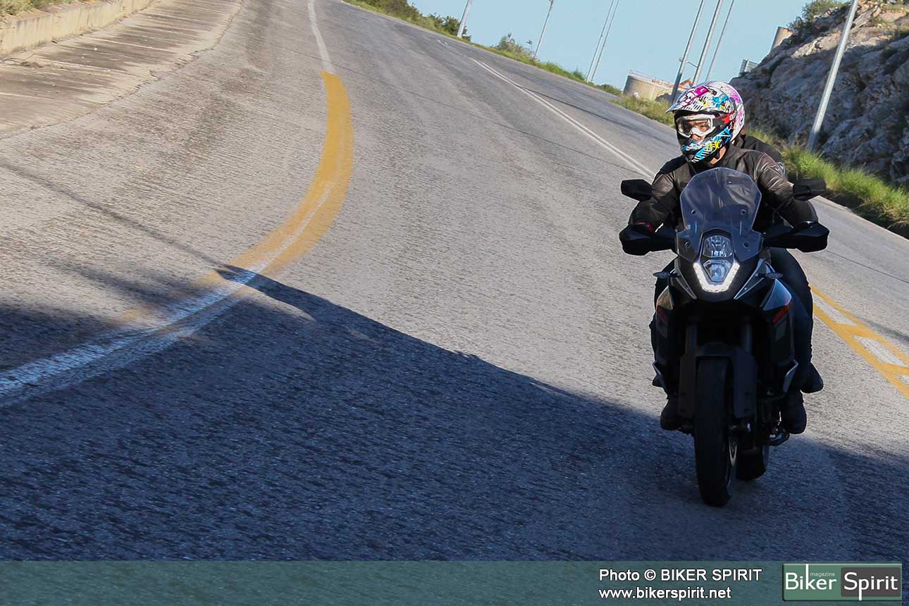 Στο επαρχιακό στροφηλίκι το Adventure δείχνει την φοβερή του ικανότητα να στρίβει , μπαίνει σε κάθε στροφή «και μόνο με την σκέψη» όπως λέμε ! Η γεωμετρία του σε συνδυασμό με τις αναρτήσεις του κάνει το Adventure μια μηχανή που μπορείς εύκολα να κινηθείς κάθε στιγμή με άνεση και ασφάλεια σε κάθε τερέν και με την δύναμη των 150 ίππων μπορείς να πας «σβέλτα» όποτε το θελήσεις.