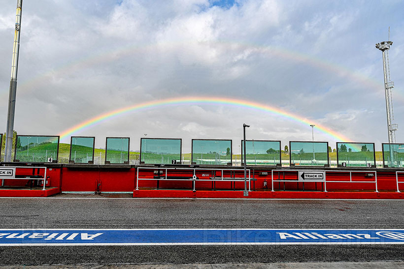 Η Επίσημη Δοκιμή στο Misano βρίσκεται σε εξέλιξη σε βρεγμένη πίστα χάρη στη δυνατή βροχή κατά τη διάρκεια της νύχτας, αλλά αυτό δεν εμπόδισε τον αναβάτη της δοκιμής HRC, Stefan Bradl, να βγει με ένα RC213V προδιαγραφών του 2022.