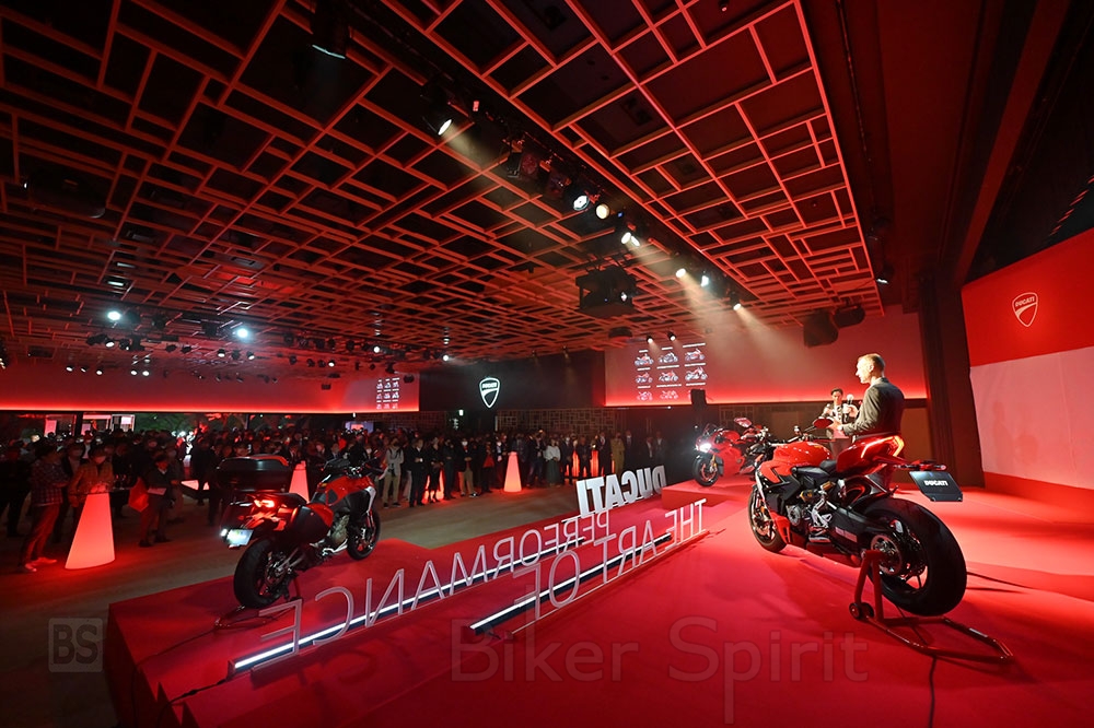 Κατά τη διάρκεια της βραδιάς εκτέθηκε ολόκληρη η γκάμα της Ducati. Για την περίσταση, τα νέα Streetfighter V2 και Panigale V4 παρουσιάστηκαν για πρώτη φορά στην Ιαπωνία . Έμφαση δόθηκε επίσης στο Multistrada V4, η πιο επιτυχημένη μοτοσυκλέτα Ducati που παρουσιάστηκε στην ιαπωνική αγορά, η οποία σε λίγους μήνες θα δει και την άφιξη του νέου DesertX.