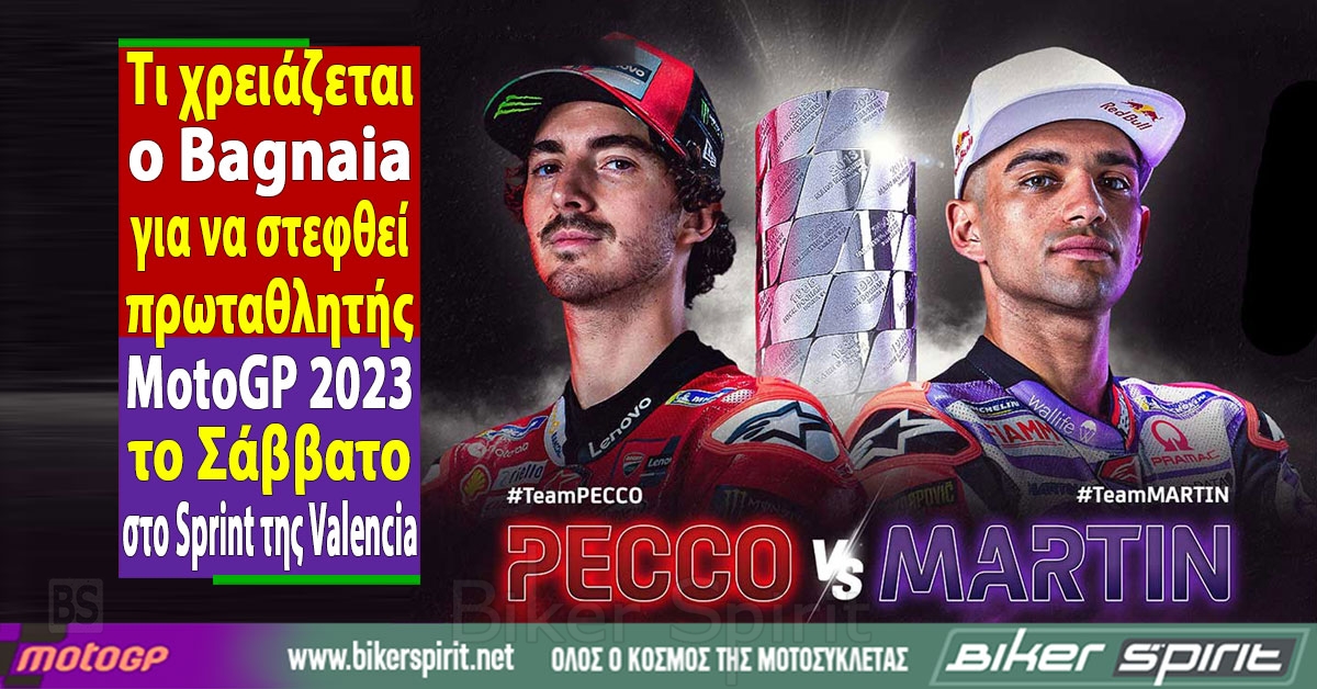 Τα σενάρια και οι πιθανότητες πάρα πολλές, άλλα παρόλα αυτά ο Bagnaia με το προβάδισμα των 21 βαθμών έχει σίγουρα το πάνω χέρι σε όλο το διήμερο και τους δυο αγώνες που θα καθορίσουν τον πρωταθλητή του 2023!