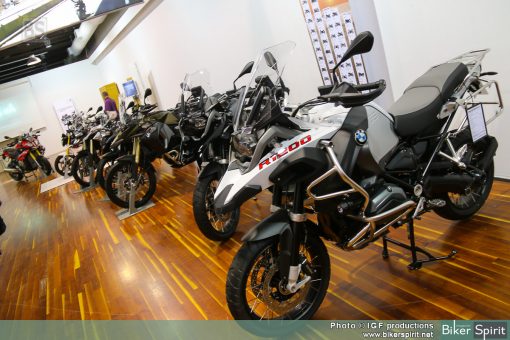 Μπαίνοντας στην αίθουσα στα αριστερά βρίσκονται τα scooter της εταιρίας, το BMW C650 SPORT και C650 GT. Δεξια παρατάσσετε η σειρά των GS όπως το νέο υδρόψυκτο mega On-Off R1200GS LC, αλλά και τα μεσαία F800GS και F700GS.