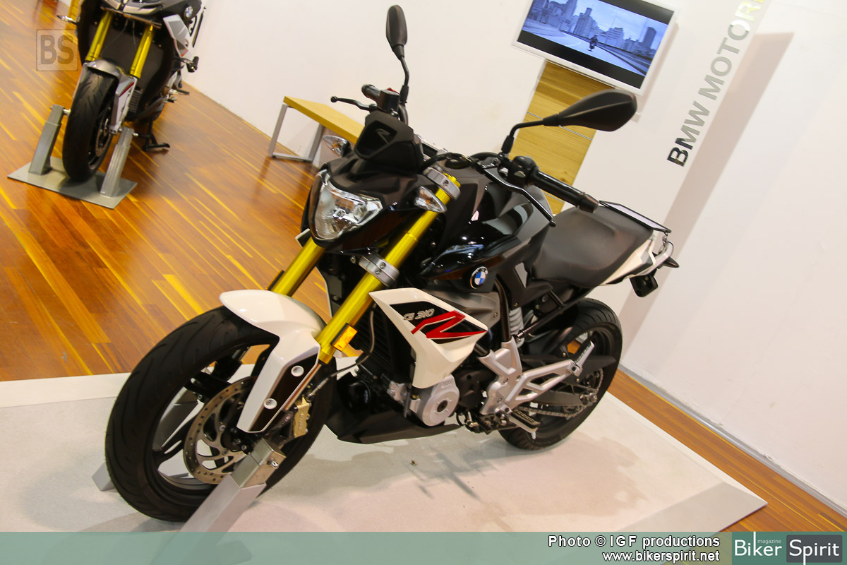 Στο βάθος δεσπόζει η νέα sport touring πρόταση των Βαβαρών το BMW S1000XR, όμως ο επισκέπτης πριν φτάσει εκεί θα πρέπει να αφιερώσει λίγο χρόνο και στο ολοκαίνουργιο μικρό γυμνό της εταιρίας, το BMW G 310 R.