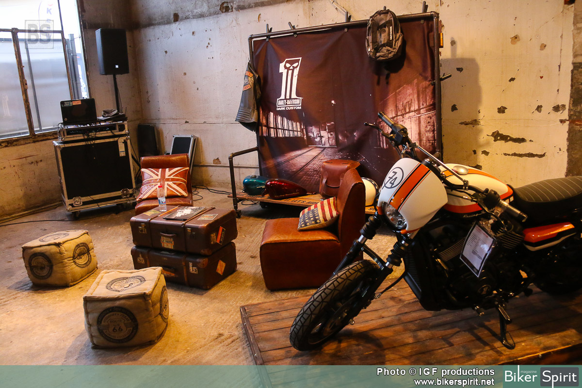 Μπαίνοντας στον όμορφο χώρο της αίθουσας της Harley, τα βλέμματα τραβάει η μοναδική Custom δημιουργία της Harley Davidson Athena, η ‘Νύχτα’, που συμμετέχει στον διαγωνισμό ‘Battle of The Kings’.