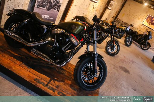 Εκτός από την ‘Νύχτα’ βεβαία, η αίθουσα είναι γεμάτη από επιβλητικές V-2 μοτοσυκλέτες της Αμερικανικής εταιρίας όπως τα Sportster Iron 883, Sportster 48, Street 750 και Softail Slim S.