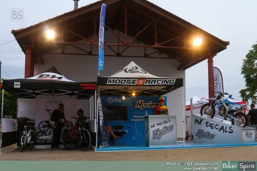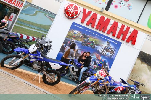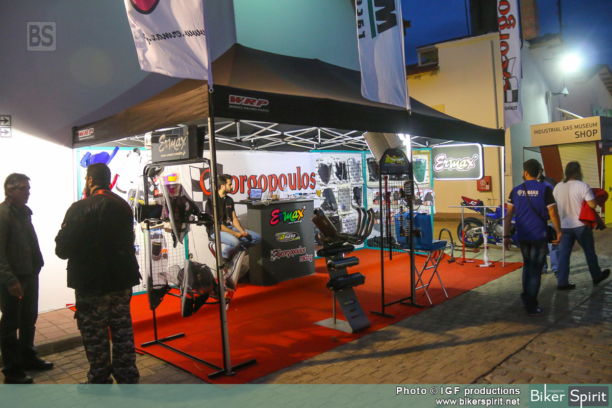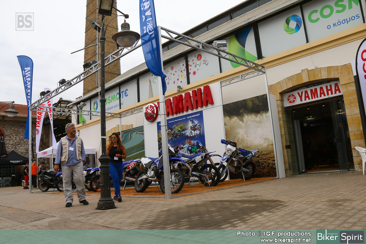 Έξω από το κεντρικό περίπτερο της ΥΑΜΑΗΑ που βρίσκετε δεξιά από το κεντρικό φουγάρο, βρίσκονται τα Superport και τα Off-Road μοντέλα της εταιρίας όπου ξεχωρίζουν οι αγωνιστικές μοτοσυκλέτες του Δημήτρη Κοτολέτα, του Δημήτρη Βαγγελάκου αλλά και η ειδικά τροποποιημένη WR450F με την οποία συμμετείχε στο Libya Rally η Πολυτίμη Κυριακοπούλου.