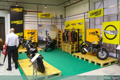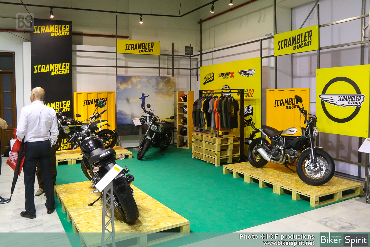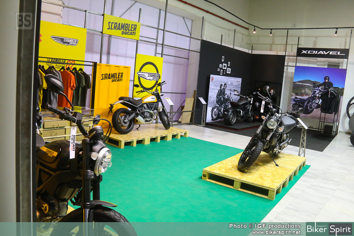 Στον εσωτερικό χώρο, εκτός από τα όμορφα κορίτσια της Ducati, ο επισκέπτης θα θαυμάσει την σειρά Scrambler και όλα τα αξεσουάρ της, το Hyperstrada 939, τα Monster 821 και 1200 R, η Panigale 959 αλλα και τα θηριώδη Diavel και XDiavel.