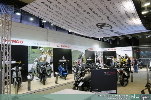 Στον εσωτερικό χώρο μπορεί κανείς να δει μια σειρά από scooter της εταιρίας, από τα “μικρά” Agility 50- 125/150 και People One 125, μέχρι τα “μεγάλα” People GTi 300, XCITING και Downtown, όπως και τα παπιά της Κymco Jetix και Visar.