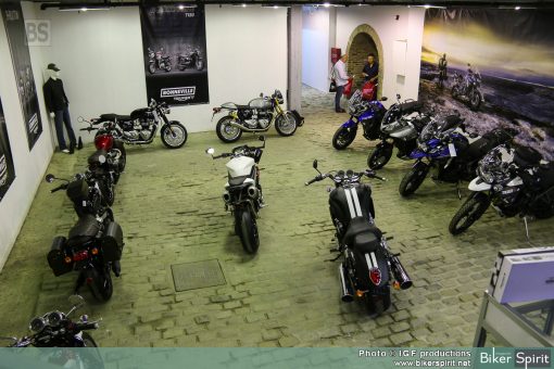 Ανάμεσα από την YAMAHA και την Honda, στην γωνιακή αίθουσα, οι λάτρεις των Triumph θα έχουν την ευκαιρία να δουν αρκετά μοντέλα της Αγγλικής εταιρίας.
