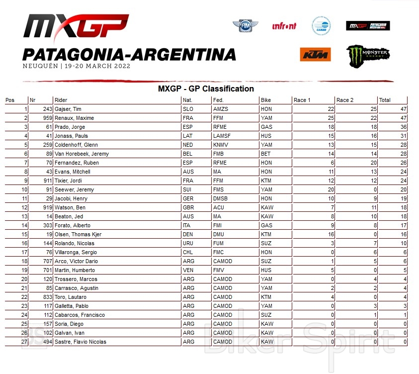 Το MXGP της Παταγονίας-Αργεντινής έγινε, όπως συμβαίνει πάντα, με ένα πλήθος 39.000 θαυμαστών να κρατούν την ατμόσφαιρα στο μέγιστο από την πρώτη προθέρμανση μέχρι την τελευταία καρό σημαία της ημέρας, υπενθυμίζοντας γιατί το Γκραν Πρι της Αργεντινής είναι από τα καλύτερα στο αγωνιστικό ημερολόγιο.