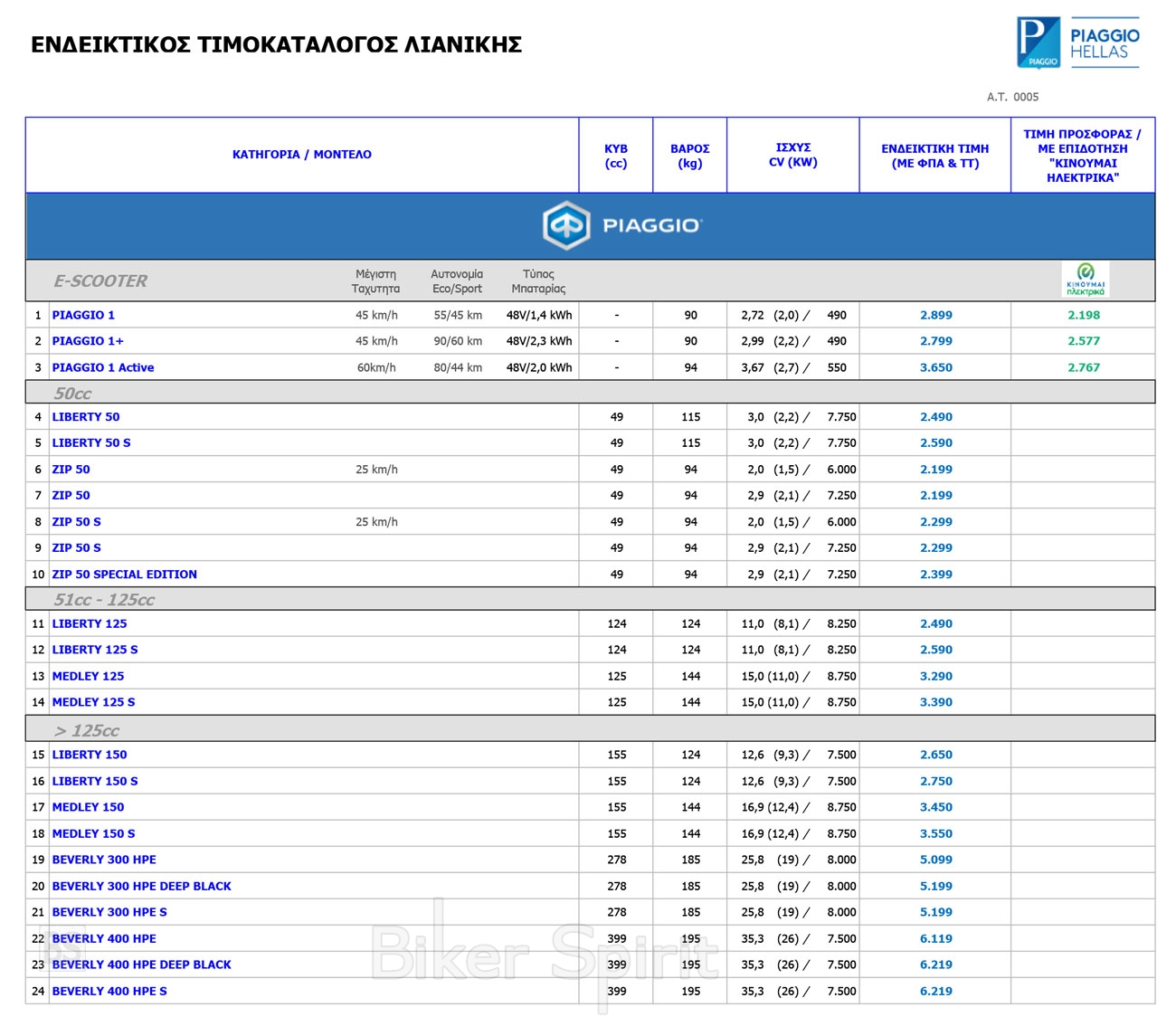 Το Piaggio group ανακοίνωσε τις τιμές των μοντέλων Piaggio για το 2025