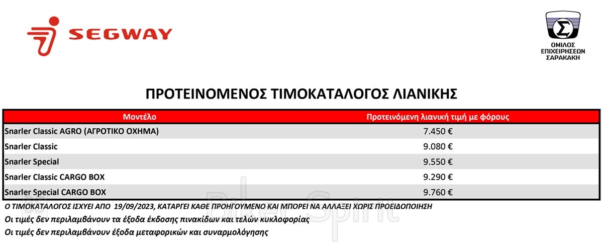 ΤΙΜΟΚΑΤΑΛΟΓΟΙ 2023 Τιμοκατάλογος της SEGWAY για το 2023 19 September 2023 BikerSpirit Segway, Σαρακάκης 0 min read Η εταιρεία Σαρακάκης ανακοίνωσε τον νέο τιμοκατάλογο της SEGWAY για το 2023 με ισχύ από 19/9/2023! Randomizer Related Posts Τιμοκατάλογος ZEEHO που περιέχει τις τιμές με επιδότηση ΝΕΟΣ ΤΙΜΟΚΑΤΑΛΟΓΟΣ της Honda Motorcycles 2023 Νέος τιμοκατάλογος μοτοσυκλετών Triumph 2023 Νέος Ανανεωμένος Τιμοκατάλογος μοτοσυκλετών BETA 2023 Νέος Τιμοκατάλογος μοτοσυκλετών YAMAHA 2023 Νέος ανανεωμένος τιμοκατάλογος Suzuki Motorcycles με όλα τα νέα μοντέλα Share this: Share on Facebook (Opens in new window) Facebook Share on X (Opens in new window) X Share on LinkedIn (Opens in new window) LinkedIn Print (Opens in new window) Print More Share on Reddit (Opens in new window) Reddit Share on Tumblr (Opens in new window) Tumblr Share on Pinterest (Opens in new window) Pinterest Related