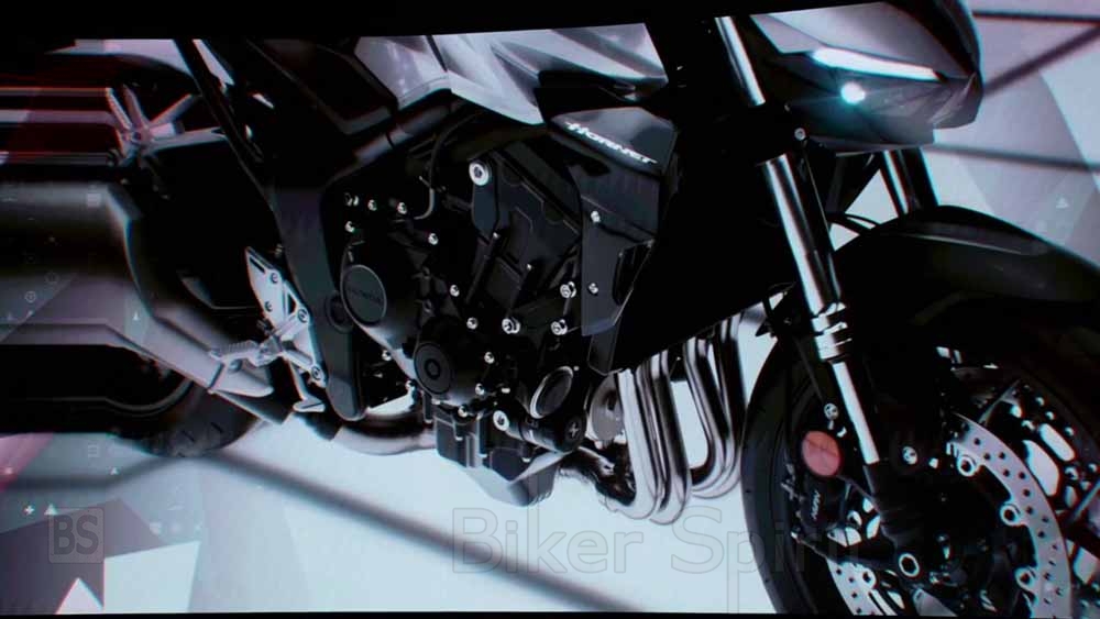 Η προσέγγιση αυτή αντικατοπτρίζεται και στη μινιμαλιστική σχεδίαση της σέλας, υπογραμμίζοντας την παραδοσιακή σχεδιαστική φιλοσοφία της Hornet με τη στενή μέση. Το νέο πλαίσιο αξιοποιείται επίσης ως σχεδιαστικό στοιχείο, αλλά με ένα ελαφρώς πιο μαύρο χρώμα, όπως και το σωληνωτό πίσω υποπλαίσιο – τύπου χωροδικτύωμα.