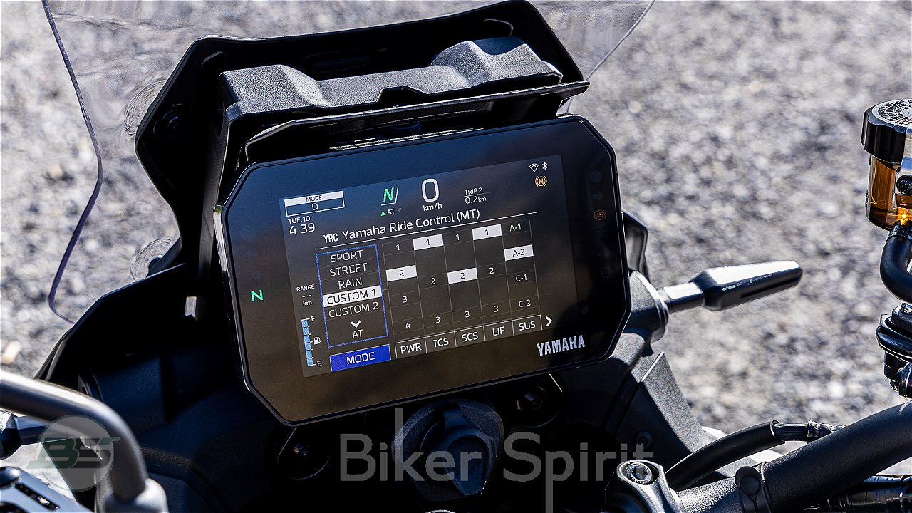 Το smartphone συνδέεται άψογα στην οθόνη και στον πίνακα διακοπτών της TRACER 9. Ο αναβάτης μπορεί να δει τα μενού και να ελέγξει τις λειτουργίες της συσκευής μέσω των χειριστηρίων νέας σχεδίασης στον κύβο στο αριστερό τιμόνι. Επιπλέον, όταν συνδέονται με τη μοτοσυκλέτα, οι αναβάτες μπορούν να εξατομικεύσουν τις προσαρμοσμένες λειτουργίες του Yamaha Ride Control, ρυθμίζοντας την προτιμώμενη απόδοση ισχύος, το φρενάρισμα του κινητήρα και τα επίπεδα παρέμβασης των πολυάριθμων ηλεκτρονικών βοηθημάτων αναβάτη της TRACER 9.
