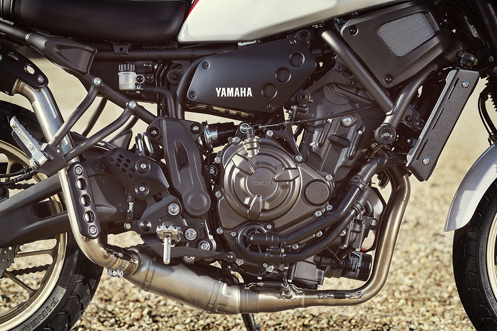 Στην καρδιά της XSR700 XTribute βρίσκεται ο εξαιρετικά επιτυχημένος και αναγνωρισμένος δικύλινδρος κινητήρας 689 κ.εκ. με διάταξη εν σειρά της Yamaha, και σχεδίαση φιλοσοφίας “crossplane” που παρέχει πλούσια και γραμμική ροπή. Πρόκειται για έναν κορυφαίο κινητήρα που προσφέρει συναρπαστικές επιδόσεις και εξαιρετική οικονομία καυσίμου.