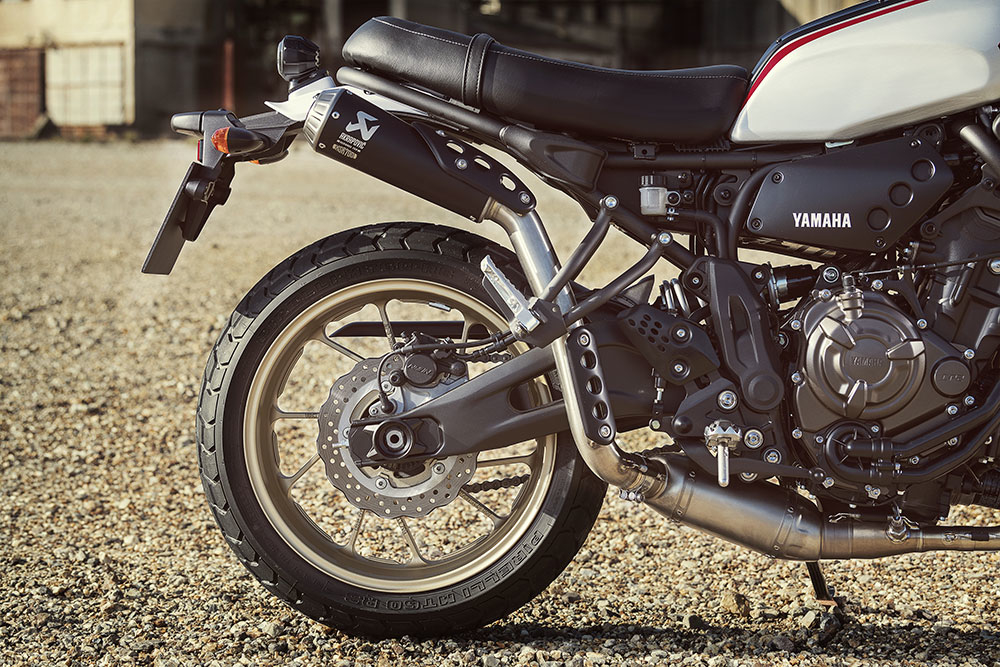 Η πραγματική ομορφιά της XSR700 XTribute βρίσκεται στον τρόπο με τον οποίο συνδυάζει την ανεπιτήδευτη άνεση του scrambler με τη σύγχρονη τεχνολογία. Ο μαύρος κινητήρας, ο σκελετός και τα πιρούνια δημιουργούν αντίθεση με τα ρετρό χρώματα του ασημένιου ρεζερβουάρ καυσίμου, των χρυσών τροχών και των λευκών λασπωτήρων και ενισχύουν την εντύπωση απλότητας, αποτίοντας φόρο τιμής στην αρχική XT500.