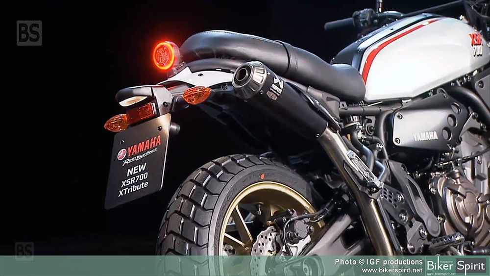 Το 1976, η πρώτη XT500 διέθετε χαμηλό σωλήνα εξάτμισης με ψηλά τοποθετημένο σιγαστήρα και οι πελάτες μπορούν να αναπαράγουν αυτή την εμφάνιση τοποθετώντας την προαιρετική εξάτμιση Akrapovič στην XSR700 XTribute. Με μαύρο φινίρισμα – όπως στην αρχική XT500 – αυτό το σύστημα 2-σε-1 υψηλών προδιαγραφών χαρίζει μια ριζοσπαστική εμφάνιση και παράγει έναν τραχύ ήχο εξάτμισης – βασικά χαρακτηριστικά που συμπληρώνουν τον χαρακτήρα scrambler της μοτοσυκλέτας και υπογραμμίζουν τις κορυφαίες προδιαγραφές αυτού του νέου μοντέλου της Faster Sons.