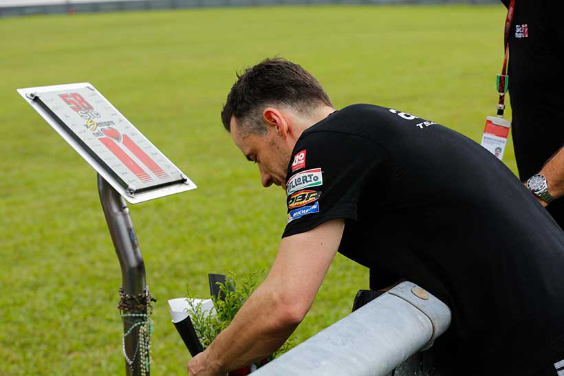 Παρόντες ο πατέρας του Marco Simoncelli και πολλοί οδηγοί και άνθρωποι των ομάδων όλων των κατηγοριών πήγαν με τα πόδια στην στροφή που έγινε το ατύχημα όπου υπάρχει μια μικρή πλάκα που θυμίζει το τραγικό γεγονός, όπου κατέθεσαν λουλούδια αλλά και έναν χειρισμό στον Marco Simoncelli ακουμπώντας την μικρή τιμητική πλάκα!