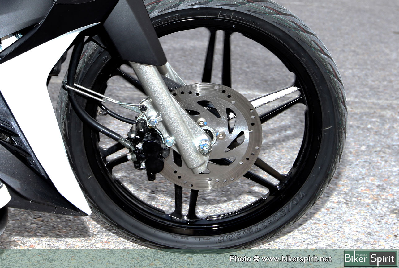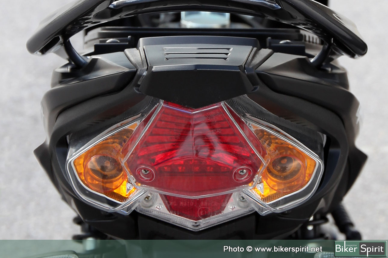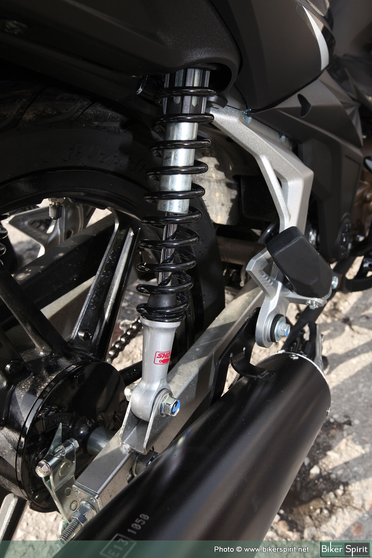 Μπροστά έχει δισκόφρενο με διπίστονη δαγκάνα. Έχει μαύρο τελικό εξάτμισης και ρυθμιζόμενα αμορτισέρ.