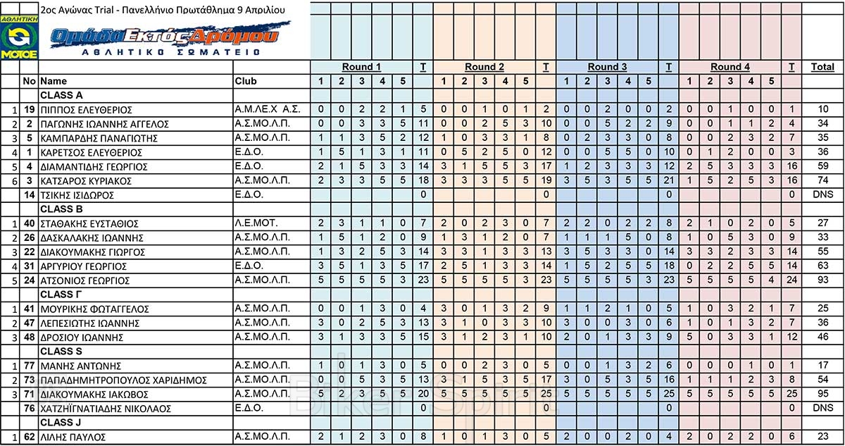 Στον αγωνιστικό τομέα, ο Λευτέρης Πίππος επανήλθε στη δράση με καινούργια μοτοσυκλέτα Gas Gas και κυριάρχησε το Σαββατοκύριακο στην Α Class, ενώ για τις επόμενες θέσεις του βάθρου είχαμε πολύ έντονο ανταγωνισμό με τον Γιάννη – Άγγελο Παγώνη με Vertigo, Παναγιώτη Καμπαρδή με Gas Gas και Λευτέρη Καρέτσο με Honda Montesa να μονομαχούν διαρκώς και να κατατάσσονται τελικά με αυτή την σειρά και τις 2 ημέρες!