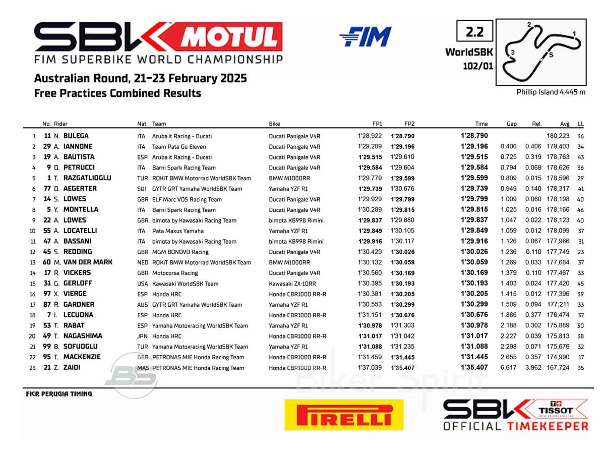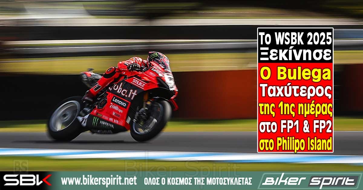 Το Παγκόσμιο Πρωτάθλημα Fim Superbike 2025 ξεκίνησε στο Phillip Island, όπου ο Nicolò Bulega (Aruba. It Racing – Ducati) κυριάρχησε την πρώτη ημέρα ελεύθερων δοκιμών FP1 και FP2 στην Αυστραλία.