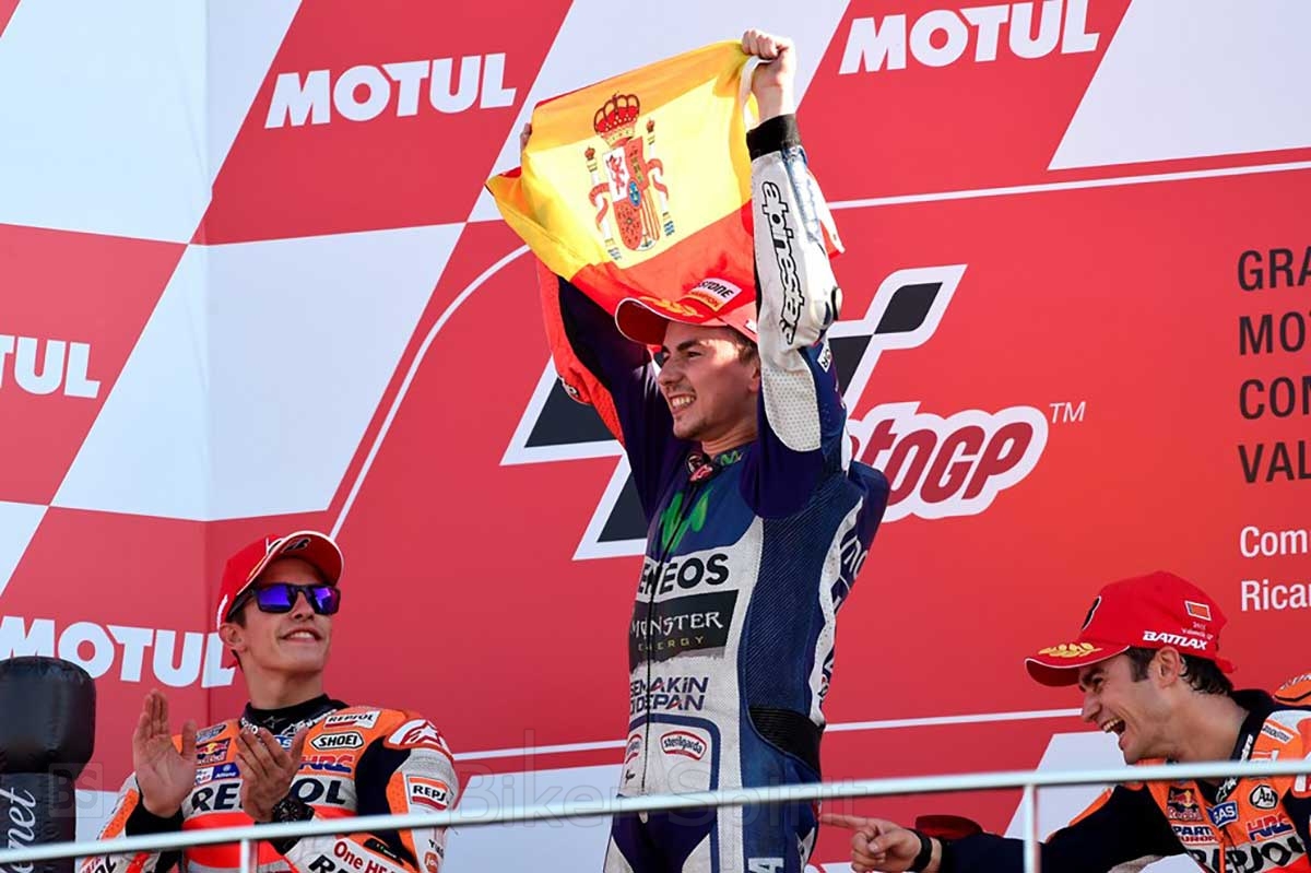 Το 2015 ο Jorge Lorenzo είχε ένα από τα καλύτερα Σαββατοκύριακα στην ήδη επιτυχημένη αθλητική του καριέρα. Παίζοντας για τον τίτλο εναντίον του Rossi, μπόρεσε να πάρει την pole και να οδηγήσει ολόκληρο τον αγώνα, να πάρει τη νίκη και το τρίτο του Παγκόσμιο Πρωτάθλημα MotoGP. Ο αποχαιρετισμός του στη Yamaha το 2016 ήρθε επίσης με μια ακόμη ηχηρή νίκη μπροστά από τον Marc Márquez.