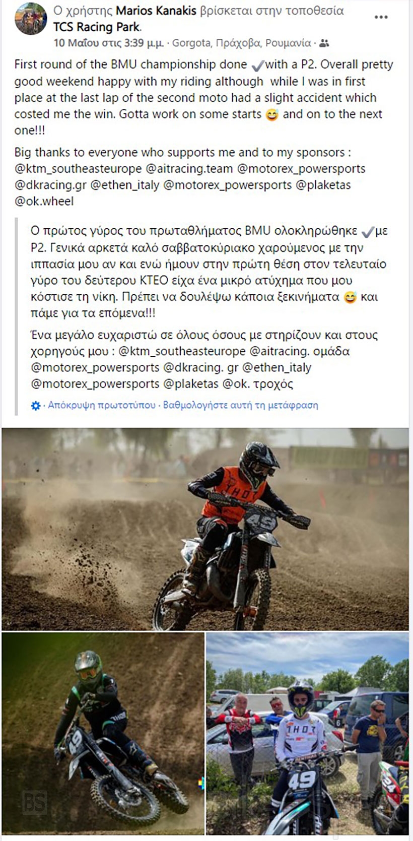 Οι Βασίλης Παντελεάκης και Μάριος Φουρθιώτης αγωνίζονται φέτος στο παγκόσμιο πρωτάθλημα Fim Junior GP στην κατηγορία ETC (European Talent Cup), ενώ ο Μάριος Κανάκης αγωνίζεται στο Βαλκανικό Motocross BMU στην κατηγορία MX2 Junior.