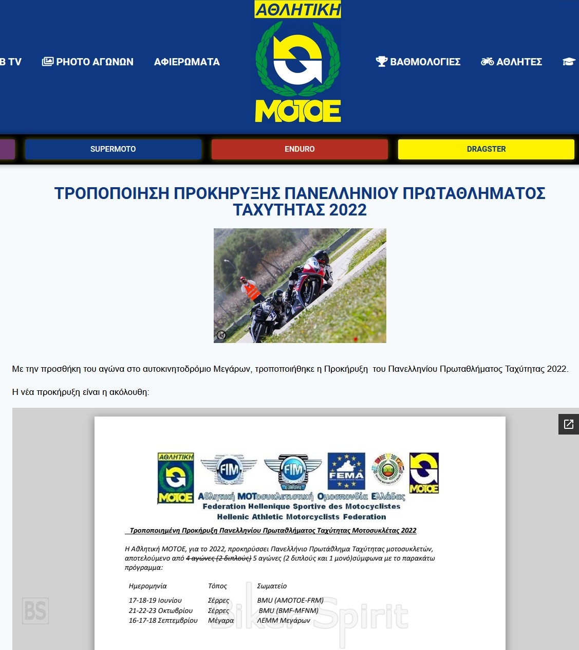 Η ΑΜΟΤΟΕ τροποποίησε την Προκήρυξη του Πανελληνίου Πρωταθλήματος Ταχύτητας 2022 προσθέτοντας έναν 5ο αγώνα στην πίστα των Μεγάρων τον Σεπτέμβριο.