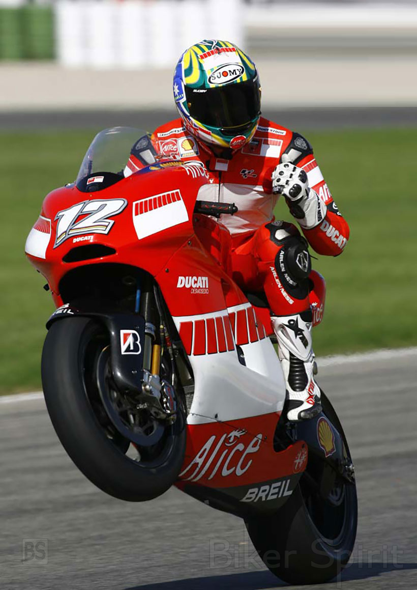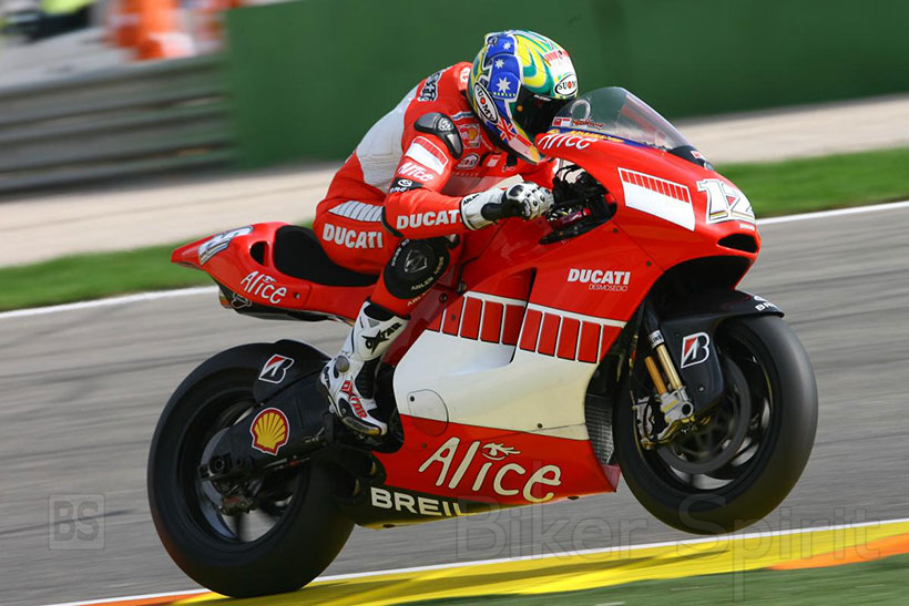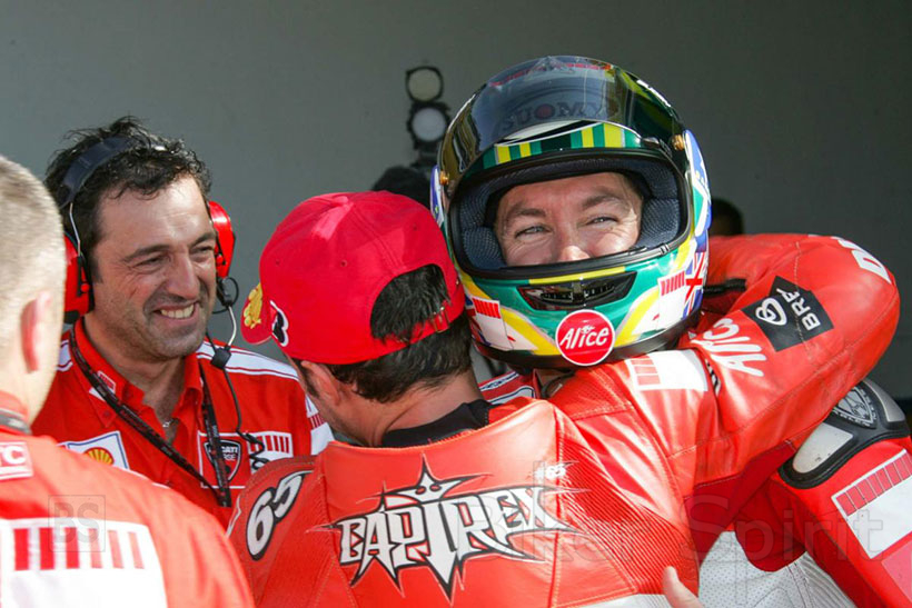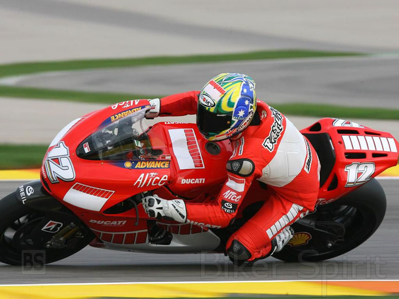 «Το 2006 είχα αγωνιστεί μόνο με το Ducati 999 και όχι με το Desmosedici, αλλά απέκτησα απόλυτη εμπιστοσύνη σε μόλις μερικούς γύρους. Ένιωσα καλά στη σέλα. Δεν είχα οδηγήσει ποτέ με Bridgestone , αλλά δεν υπήρχε πρόβλημα: στο Superbike είχαμε ελαστικά δρόμου και με τα ελαστικά MotoGP ένιωσα στον παράδεισο. Έκανα χρόνους που δεν φανταζόμουν, κερδίζοντας τη δεύτερη θέση στην σχάρα εκκίνησης, πίσω από τον Valentino Rossi που εκείνη την Κυριακή παιζόταν το Παγκόσμιο Κύπελλο εναντίον του Nicky Hayden.»